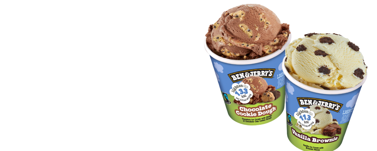 Our flavour gurus have concocted our Lighten Up! range to be full of the chunks you love, with less fat than similar ice cream products. Dough-licious!