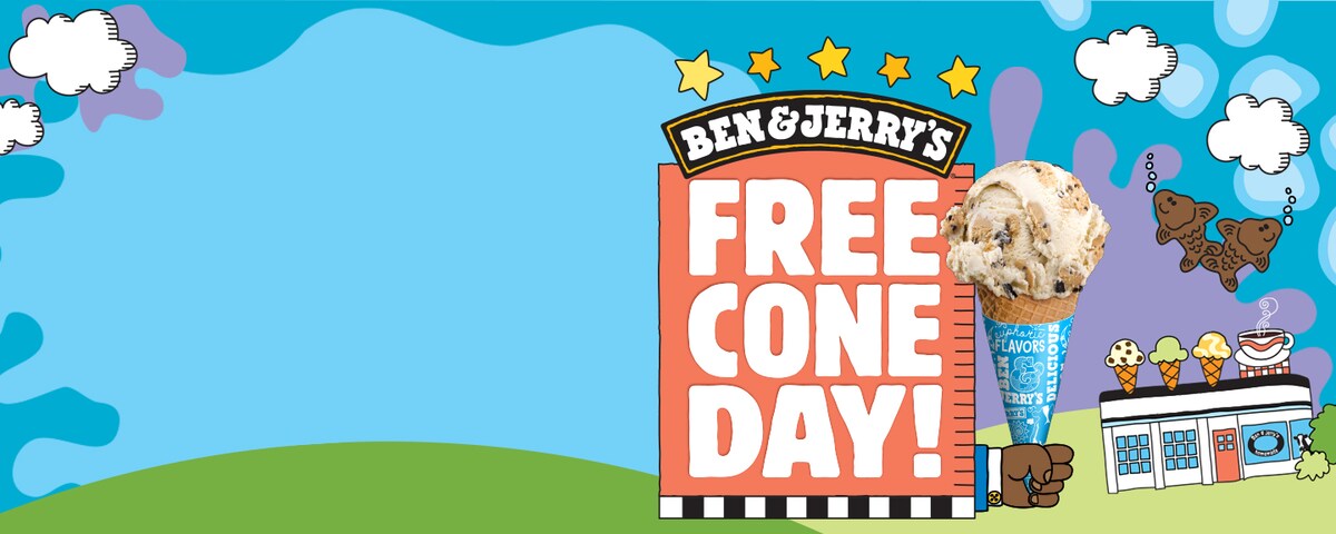 Free cone day is being celebrated around the world and we’ll be giving away free ice cream. Every time you enjoy a scoop of Ben & Jerry's, you're showing us how much you care. We love you too and Free Cone Day is our favourite way to show it!