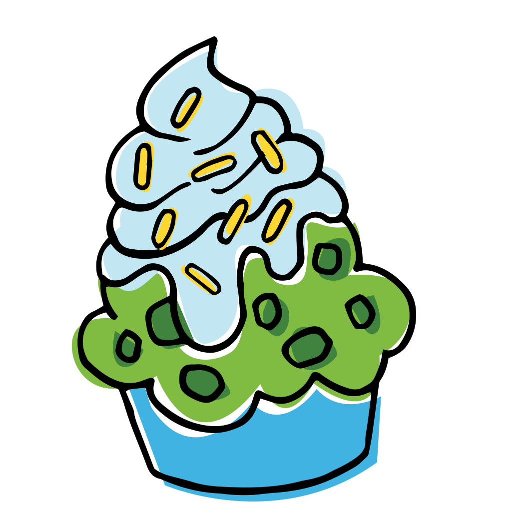 Sweet Cream Ice Cream with Chocolate Chip Cookies & Chocolatey Cookie Swirls, Topped with Creamy Whipped Ice Cream, Sea Salt Chocolatey Swirls & Chocolatey Chunks