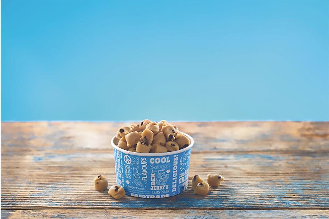Vanilla ice cream with chunks of chocolate chip cookie dough and chocolatey chunks